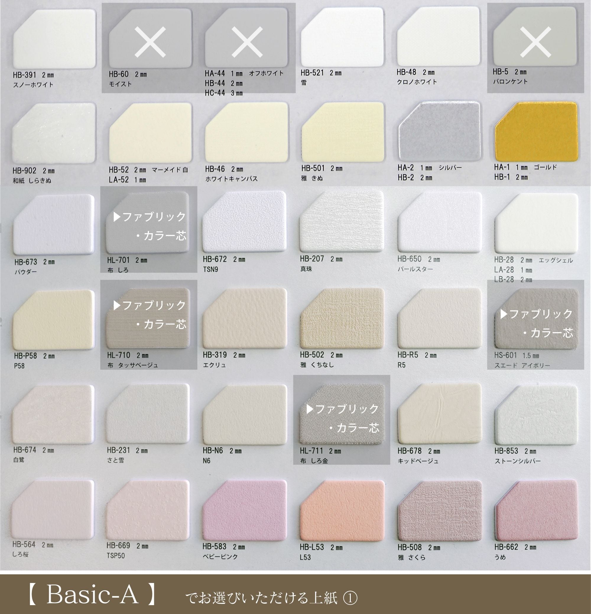 このページでは 「【Basic-B】でお選びいただける上紙」 の中からお選びいただけます。
