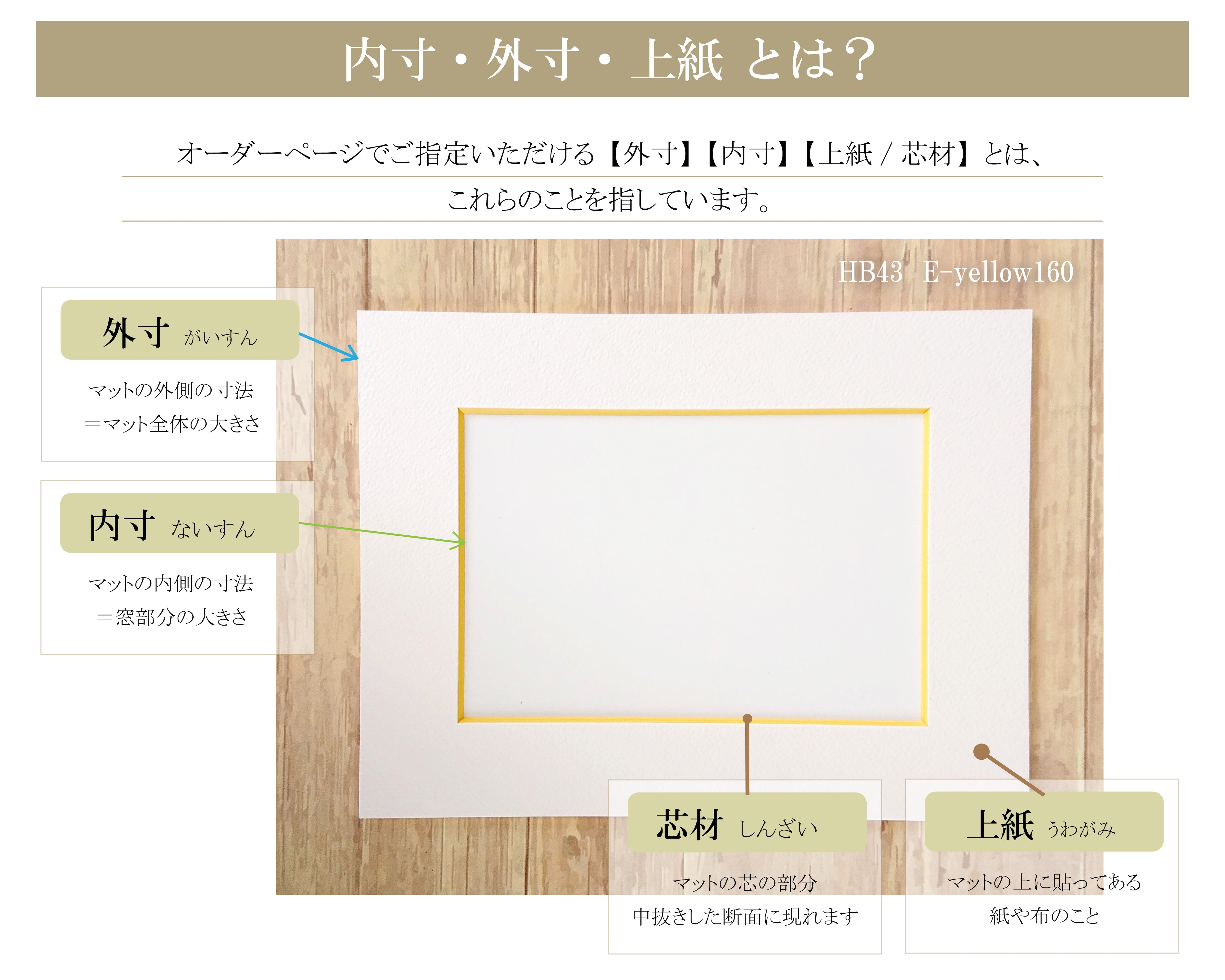 「上紙/芯材」「外寸」「内寸」の3点をご指定いただき、